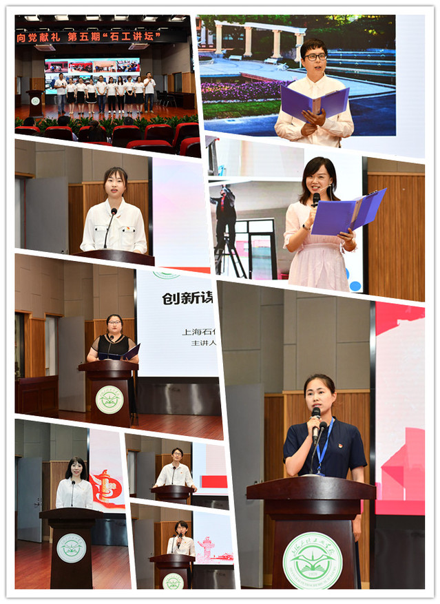 台上,6个党支部围绕“向党献礼”这一主题,采用演讲、诗朗诵等形式,通过《展巾帼新风采,迈化工新时代》、《不忘初心,以体育人》、《让文明之花绽放校园》、《乘风破浪,进无止境》、《创新谋发展,同心赢未来》、《幕后英雄》等故事的宣讲,介绍了化工科专业国际化课程开发建设团队、上海市安全技能综合实训示范基地建设团队,基础科体育组团队,文明校园创建团队,机电科智能控制组团队,培训中心团队及总务处团队的先进事迹,鼓舞人心,催人奋进。