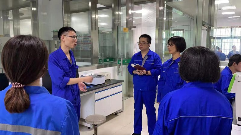 进入分析实验室,老师们就被各种各样的分析仪器所吸引,特别是之前没见过的设备,大家更是从原理到设备的构造及操作进行全面的了解学习,碍于企业的规定,我们不能亲自操作,还是感到不无遗憾,在详细了解了各个仪器之后,我们开始学习各种原料及产品的分析方法,如活性物的测定、双氧水含量的测定、色泽的测定、游离油的测定等等,整个学习过程还是比较轻松的,除了因为老师们有一定的理论基础,还因为奥威对每一项测定项目都有一个非常清晰而又详尽的操作规程,类似于我们的实验手册,相信我们环保或化工专业的学生,也能很快胜任这里的工作。