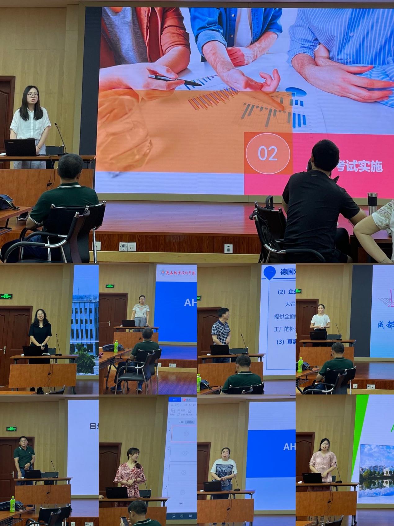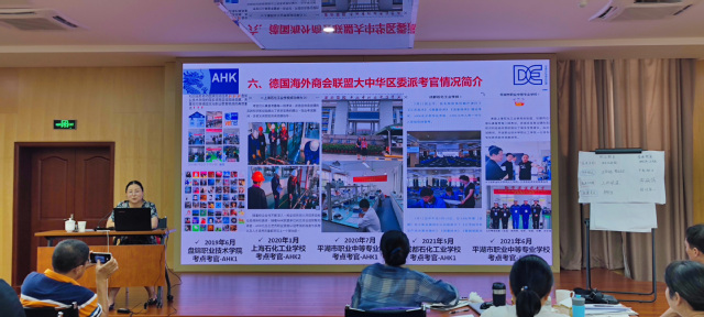 培训最后一天是各组代表汇报,共有13组代表上台分享了此次AHK化工工艺员考官培训的心得,职教领域专家黄汉军老师作了培训总结。教师代表们表示通过此次培训对德国双元制教育有了进一步的了解,后续会结合AHK化工工艺员考试规则细化教学内容,注重学生行动能力的培养。
