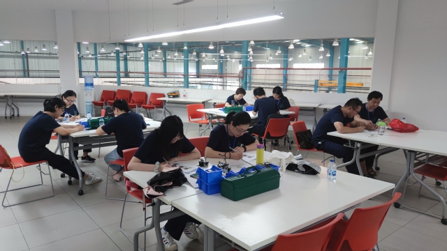 机电科赴圣东尼(上海)针织机器有限公司的企业实践工作正在如火如荼的进行着,7月23日,为阶段性了解零部件装配组教师们的实践收获,企业培训讲师为本组教师开展了一场书面考核。