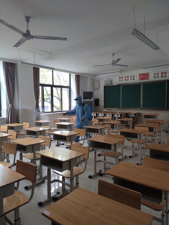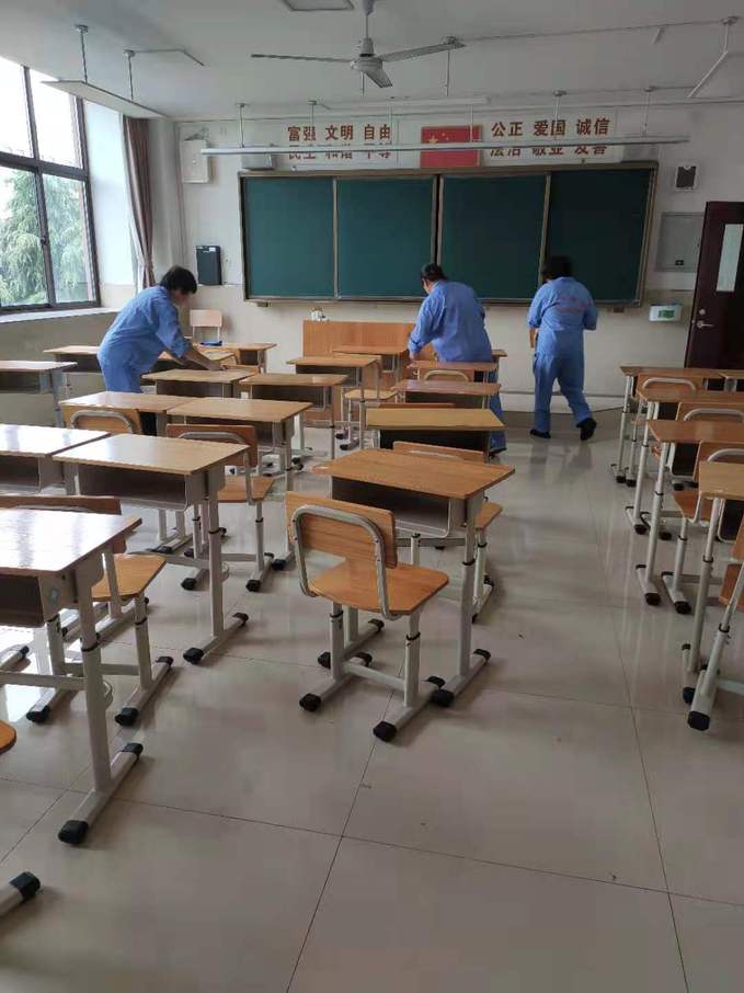 为确保学校顺利开学,总务处提前完成了一系列后勤服务工作,整个校园卫生的打扫、校园绿化的修剪、教室宿舍等场所的消毒、教室课座椅的配置、公共设施的维修等等。