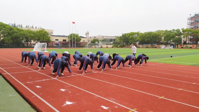 课程开始,在薛老师响亮的口令下,同学们在操场中完成热身和行进间的准备活动,为接下来的新课做准备。首先,薛老师对上节课的知识蹲踞式起跑姿势做了复习也为接下来的新课蹲踞式起跑后的加速跑做准备,然后通过课前布置的预习和课堂中的小视频向同学们引出了本节课的学习内容,之后采用分层练习的练习方法,让同学们针对自己的不足,有效率的改进蹲踞式起跑与蹲踞式起跑后的加速跑技术动作。