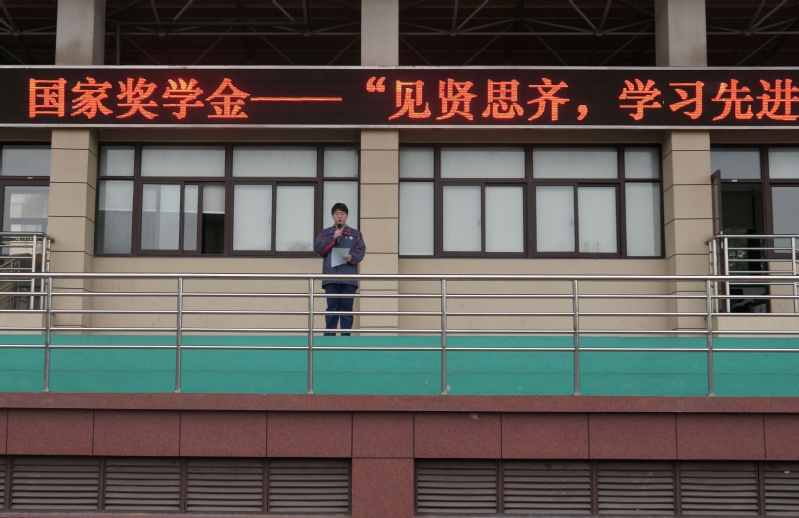 2021年10月20日星期三,化工科全体学生于北区操场举行学习模范大晨会。181数控1班的沈旭涛同学为大家介绍了我校学习模范—171数控班的吴范骏。