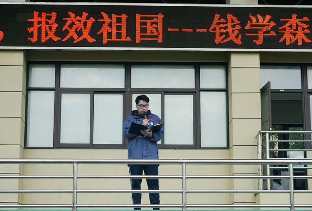 随后,190化学工程班彭佳伟同学登上领操台,分享了中国航天事业的奠基人——大国工匠钱学森的故事。1949年10月1日,中华人民共和国成立。身在美国的钱学森开始筹划回国。为了回国钱学森毅然决然的辞去了在美国的一切职务,但美国军方并不想放钱学森回国。美国海军部副部长丹尼尔·金贝尔甚至说:“一个钱学森抵得上5个海军陆战师。我宁可把这个家伙枪毙了,也不能放他回中国去!”五年归国路,十年两弹成。1950年,钱学森被美国司法部移民归化局以莫须有的名义非法拘留了足足达5年,期间他甚至用香烟纸写求助信,直到周恩来总理过问才得以脱身。1956年10月8日是钱学森回到祖国一周年的日子。这一天由钱学森受命组建的我国第一个火箭、导弹研究机构国防部第五研究院成立,钱学森作为试验总技术负责人亲眼见证了两弹结合试验的成功。从此,中国的核导弹终于具备了威慑与实战能力。由于钱学森的毅然回国中国导弹、原子弹的研发至少向前推进20年。2009年10月31日钱学森逝世。在他心里,国为重,家为轻,科学最重,名利最轻。5年归国路,10年两弹成。