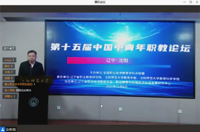 为进一步贯彻落实习近平总书记对职业教育工作的重要指示和全国职业教育大会精神,推动我国现代职业教育的高质量发展,11月6日,第十五届中国中青年职教论坛暨2021 年中国职业技术教育学科建设与研究生培养研讨会于线上如期召开。本届论坛的主题为“类型·融合·适应:职业教育高质量发展”。全国职业技术教育学科点联盟成员单位领导、教师、博士研究生、硕士研究生参加了会议的开幕式。我校共有6位新进教师参与了此次研讨会议。