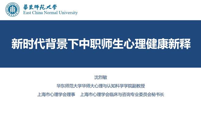 为进一步提升2021年上海市新进中职教师的专业化发展,密切关注中职师生心理健康,上海市中等职业学校新进教师规范化培训第八次研训活动在11月13日顺利在线进行。本次研训活动主讲专家为华东师范大学的陆素菊副教授和沈烈敏副教授。