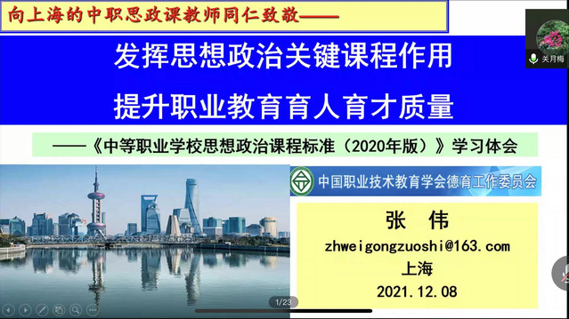 咀嚼课程标准 强化思政教学 ——记上海市中职思政课程标准解读线上教研活动