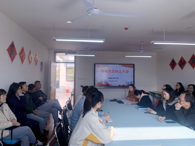 1月4日中午,基础经贸党支部在C区图书楼407室召开了支部党员大会,讨论、表决预备党员王颖同志的转正事宜,会议由支部书记于燕娜主持。