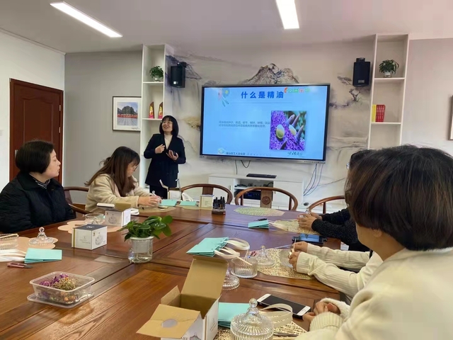 此次活动在学校教工之家活动室开展,以芳香体验和香薰蜡烛制作为主要内容,活动还专门请来了专业的芳香课程教师。活动开始前,分工会委员们就提前布置好了场地,整齐的桌椅、点缀的一抹绿植、明媚的阳光、空气中的芳香都在迎接主角们的到来。活动开始,在老师的带领下,大家先了解认识了精油的有关知识,并分别体验了野橘和薄荷味精油,在“闻香”的过程中感受自然的奥妙。接下来,大家开启了创造美好的旅程,融化的蜡液与精油在慢慢的融合中产生了奇妙的香味,更加激动人心的是蜡液渐渐凝固过程中大家充分发挥自己的创造性,用各种花、草和装饰品自由组合,在方寸间打造着自己的小世界,表达着自己 对美好生活的理解和追求。