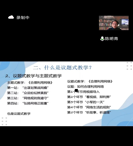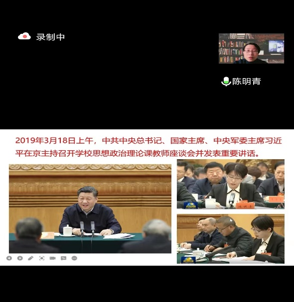 2022年4月13日下午,上海市华东师范大学第一附属中学特级教师陈明青做了主题为《思政课落实立德树人根本任务的路径探析》的线上讲座。