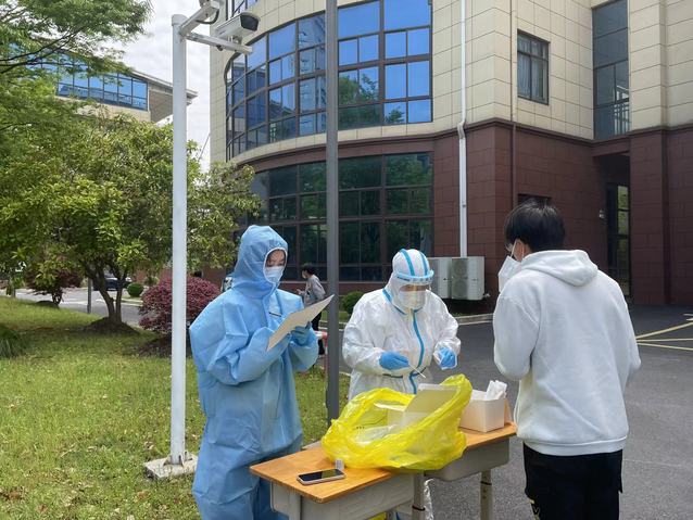 为了严防病毒进校园,年轻的班主任能及时将最新的要求传达班级,及时做好学生的流调信息的核查,开好班级主题班会,宣传学校对外卖和网购的禁令,组织志愿者做好校园巡查,按照上级阶段性的要求,五位教师也化身“大白”助手,配合校医做好校内核酸检测。