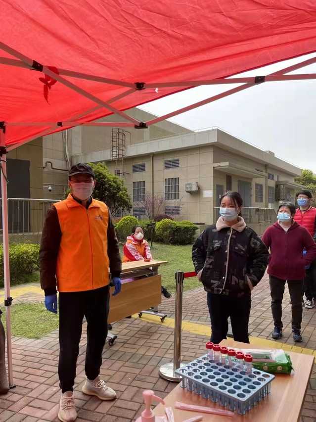 家有两娃的高文杰、金磊老师,在做好“主播”工作之余,舍小家为大家,多次参加社区疫情防控志愿者工作。2022年3月13日中午,他们居住的金悦华庭小区开始进行封控管理。面对突然的封控,小区居委会紧急招募志愿者,他们义无反顾的报名参加。在社区核酸检测、抗原体检测、收发快递运送物资、进行疫苗登记、发放通行证等方面的疫情防控工作队伍中都有他俩的身影。根据社区防疫工作要求,像维持检测秩序、到不同楼栋呼叫居民分时段进行检测、帮助老人在健康云进行“核酸检测登记”等工作,对他们来说已经是轻车熟路。在第一批抗原体检测过程中,第一次接触的居民都不知道如何使用,他们耐心指导,做好后及时进行回收登记,得到居委干部和居民的一致称赞。在核酸检测最初阶段,速度比较慢,从志愿者开始准备工作到结束收尾,接近7个小时,期间穿着严密的防护服不能上厕所、不能喝水。而面对困难他们总是积极乐观应对。因为他们知道,作为党员就是要在国家、社区需要的时候挺身而出,发挥党员的先锋模范作用。