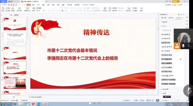 在支部书记刁小伟的带领下,大家集体观看了市第十二次党代会的视频学习资料,学习领会市第十二次党代会的重要精神。中国共产党上海市第十二次代表大会6月25日在世博中心隆重开幕。大会由龚正同志主持。