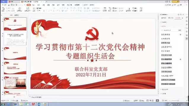 根据区教育工作党委下发的《关于组织召开“学习贯彻市第十二次党代会精神”专题组织生活会的通知》的要求,联合科室党支部于7月21日以腾讯会议形式线上开展专题组织生活会。