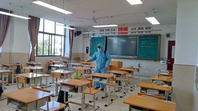 营造卫生、干净、整洁的校园环境。为确保学校顺利开学,总务处提前完成了一系列后勤服务工作,整个校园卫生的打扫、校园绿化的修剪、教室宿舍等场所的消毒、教室课座椅的配置、公共设施的维修等等。