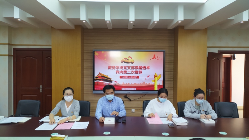 10月12日下午,教务系统党支部于三楼会议室召开支部换届选举第二轮党员推荐会和党外群众推荐会。会议由支部书记俞婕主持。