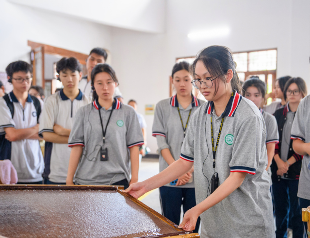 除了参观红色景点和历史遗迹,同学们还在宣纸文化园体验了宣纸制作,不仅帮助同学们更加了解中华传统文化,也增强了动手能力和创造力。在宣城博物馆,同学们了解到了宣城的历史和文化底蕴,感受到了中国传统文化的博大精深和源远流长。这些经历让我们更加热爱祖国和中华民族的文化,也更加坚定了我们传承和发扬中华民族文化的信念。