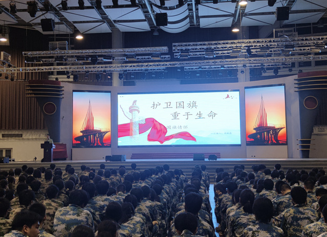 许教官从国旗产生的历史,对国旗的立法以及国旗的重要意义等几个维度充分讲解了作为国家标志的国旗重大使命。一个个鲜活的实例都映射着伟大祖国的复兴之路,南沙守礁官兵使用过的国旗,巡守“蓝色疆土”的海警船上悬挂过的国旗,开山岛上守岛卫士王继才夫妇升起过的国旗,海拔5400多米的巡逻点上象征主权的“石头国旗”,西至帕米尔高原的上升起的国旗,一个个感人至深的故事,都激励着每个同学热爱祖国,并为之而不断奋斗,实现中华民族伟大复兴的中国梦。