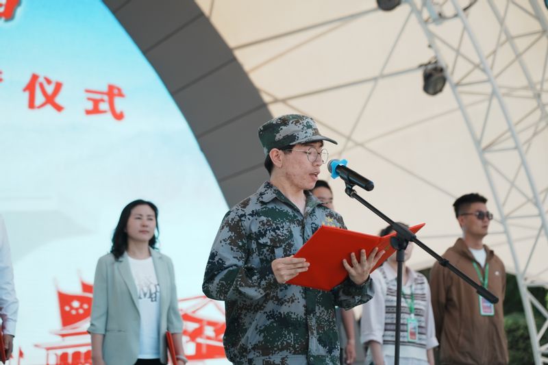 5月17日,在结营仪式上,我校231应用化工02班的学生朱天旸代表本次受训学员发言。他回顾了五天的国防教育经历,分享了自己的成长与感悟。他的话语中充满了对祖国的热爱和对未来的期待,赢得了在场师生的阵阵掌声。