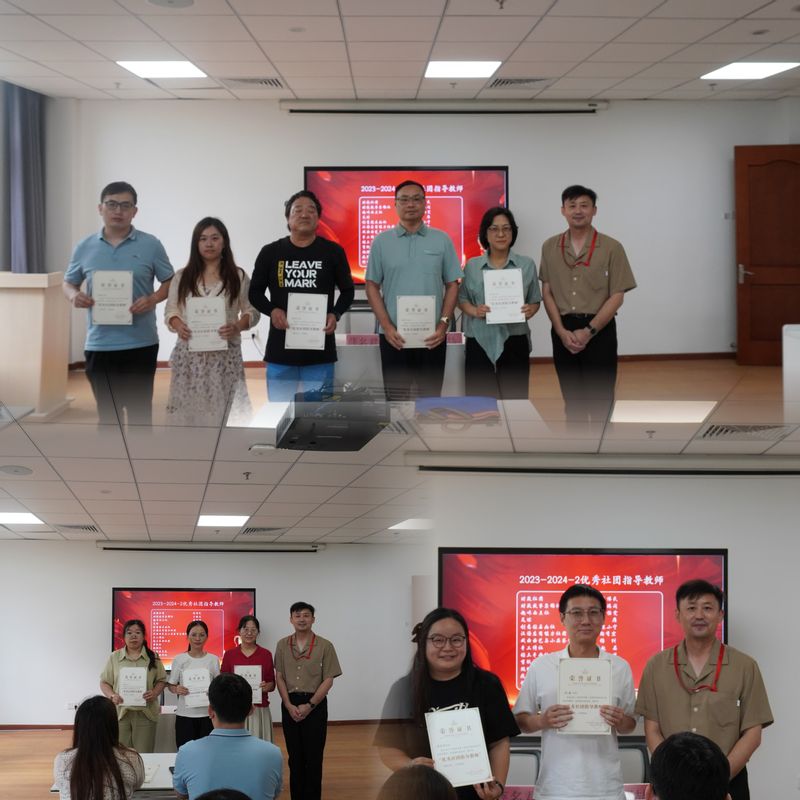 会上薛名君就2023-2024学年第二学期社团工作情况向大家作总结,并宣读了优秀社团名单,学工部部长、学生处主任邵喆为优秀社团指导教师颁发荣誉证书。