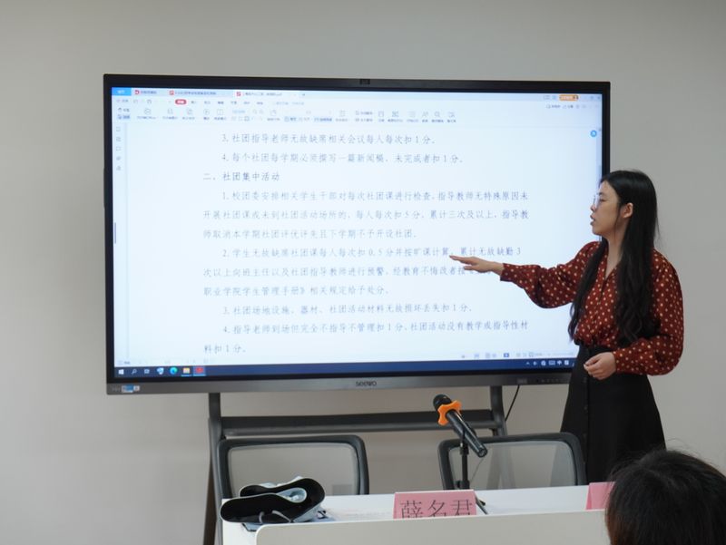最后,薛名君就社团(中职)考核制度为老师们展开讲解,并强调教师在开展社团过程中,要通过不断加强社团成员的思想政治教育,实现全方位、全过程育人。