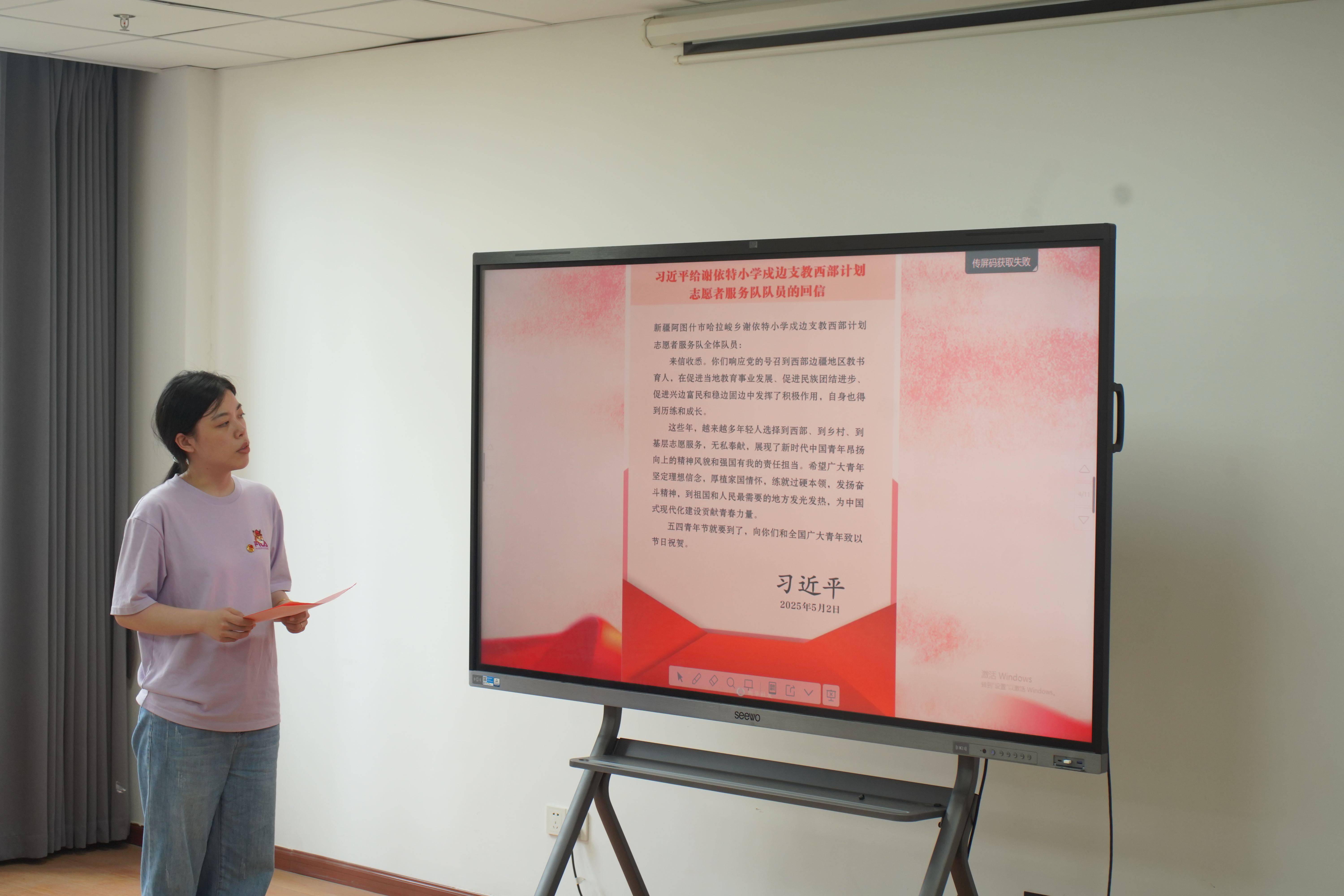 仪式在庄严的国歌声中开始。团委副书记薛名君带领大家学习习近平总书记给谢依特小学戍边支教西部计划志愿者服务队队员的回信。总书记对青年志愿者的奉献精神表示了高度赞赏,并鼓励青年们在祖国和人民最需要的地方展现自己的才华。薛名君希望新团员们要铭记总书记的期望,继承红色传统,勇于承担时代赋予的使命,将个人成长与国家发展紧密相连,让青春在奋斗中绽放。
