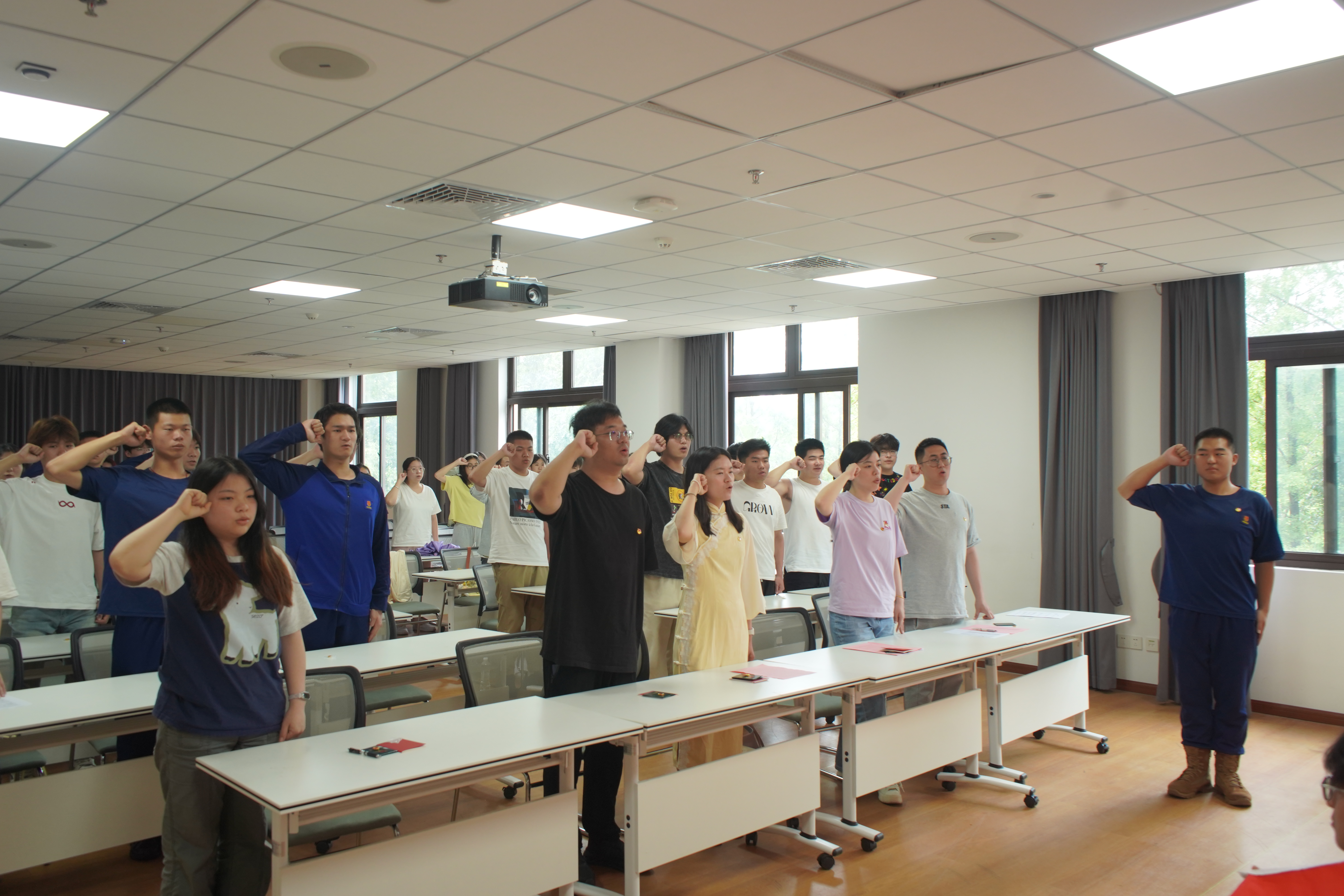6月12日中午,我校团委在学生活动中心309举行2025上半年新团员入团仪式。校团委书记罗茜、团委副书记薛名君、团委委员范峻铭、张赜昊、徐乐出席仪式。87名新团员参加仪式。