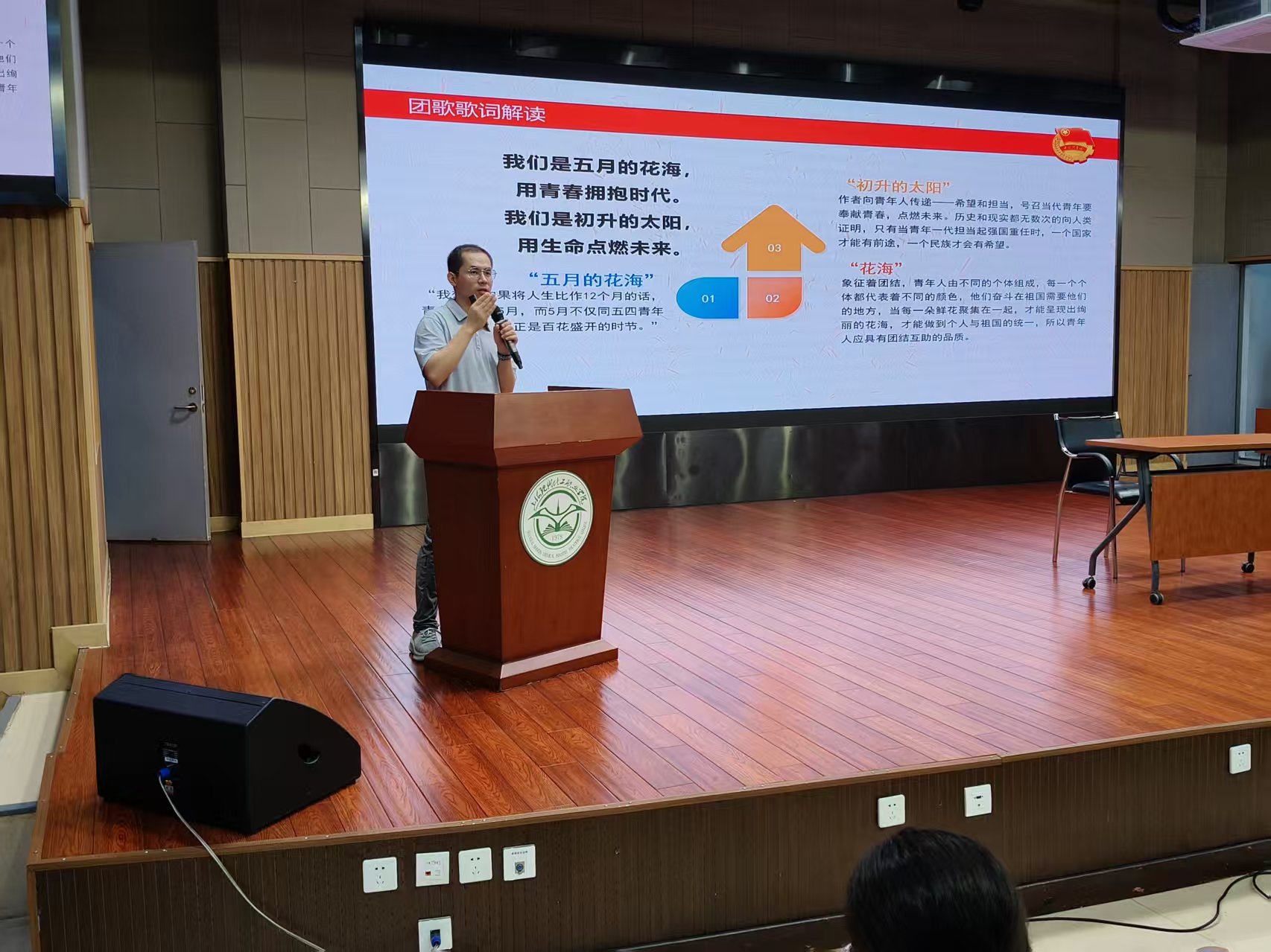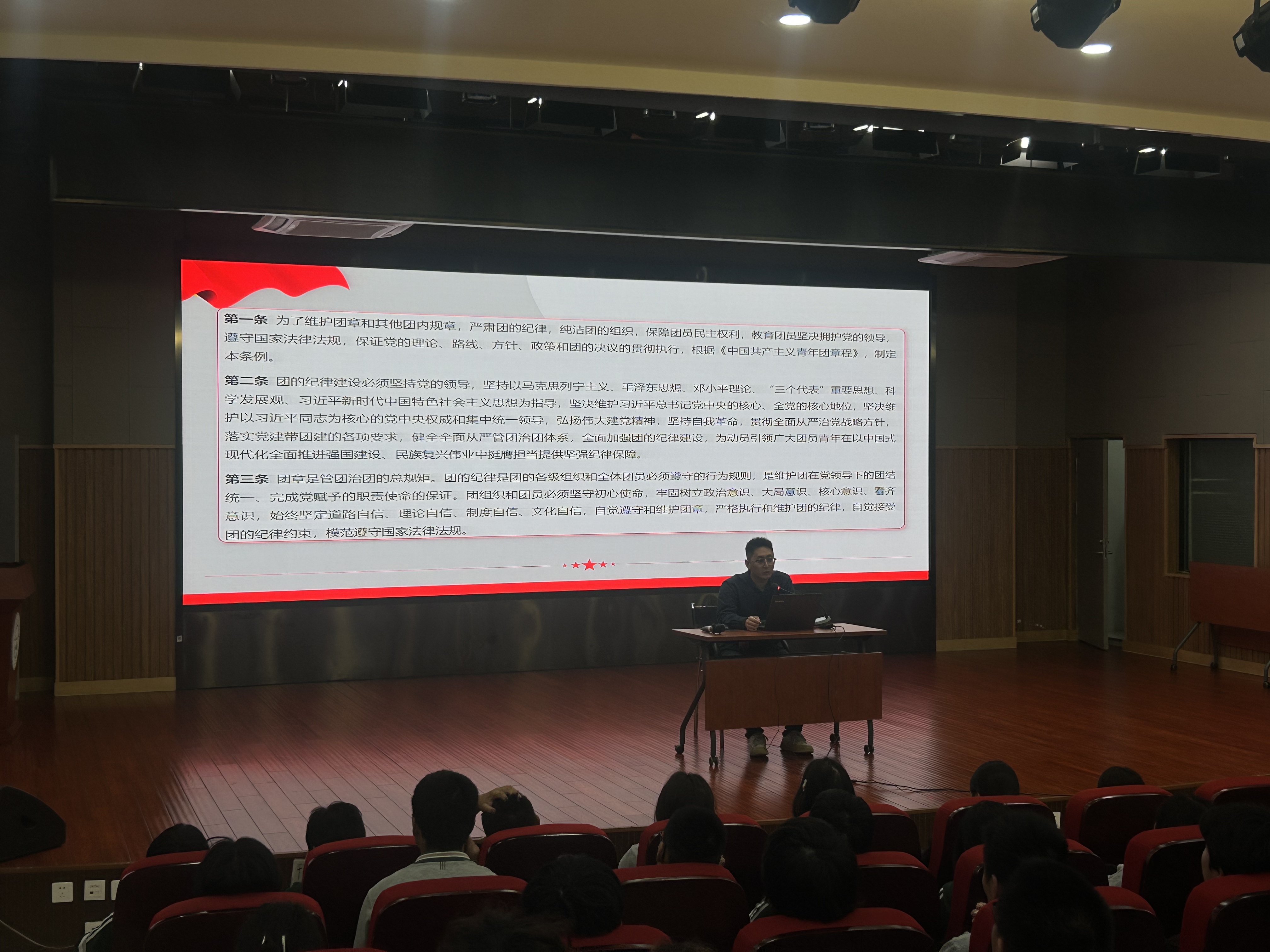自9月8日以来,校团委精心策划了8次主题团课,涵盖党团理论、历史教育、纪律规范、文化传承等多个维度。主讲教师团队由校党政讲师团老师、学工部教师以及校团委教师组成。刘凯老师主讲《学唱共青团团歌》,激发入团积极分子青年爱团爱党的热情;罗茜老师主讲《团员发展流程》,帮助入团积极分子明确入团规范并深化对共青团组织的认识;刘曼老师主讲《中国共产党历史》,增强入团积极分子对党的认识和认同;薛名君老师主讲《团的光辉历史》,引导入团积极分子传承红色基因,赓续红色血脉;范峻铭老师主讲《中国共产主义青年团纪律处分条例》《“一二九”运动》,引导入团积极分子在强化规则意识同时,激励入团积极分子以实现中华民族伟大复兴为己任;邵喆老师主讲《中华优秀传统文化体系》,助力入团积极分子增强文化自信、传承中华文脉;杨晓燕老师主讲《青春心向党——总书记的青年观》帮助入团积极分子明晰青年运动历程与经验,树立正确人生航向。