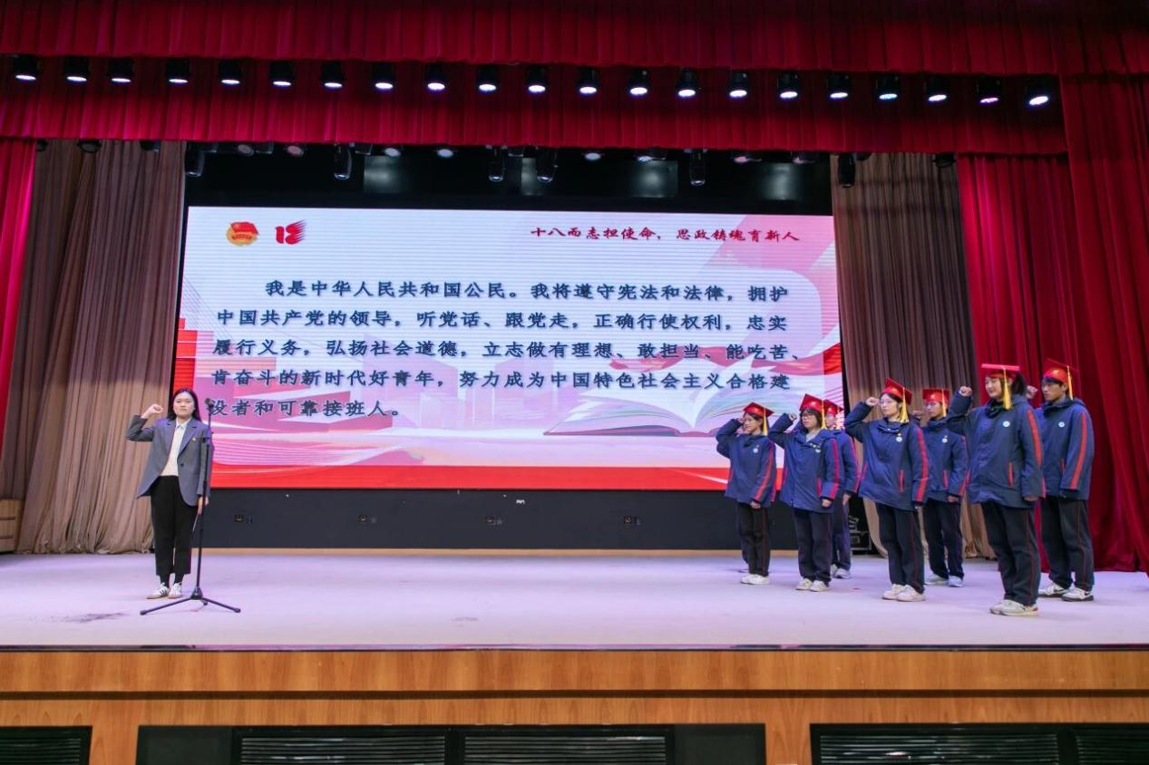 本次活动深度融合了理想信念教育、法治教育、感恩教育与责任教育,为步入成年的学子们注入了强大的精神动力,引导他们铭记今日之誓,肩负时代之责,坚定步伐,迈向建设祖国、服务人民的壮阔前程。