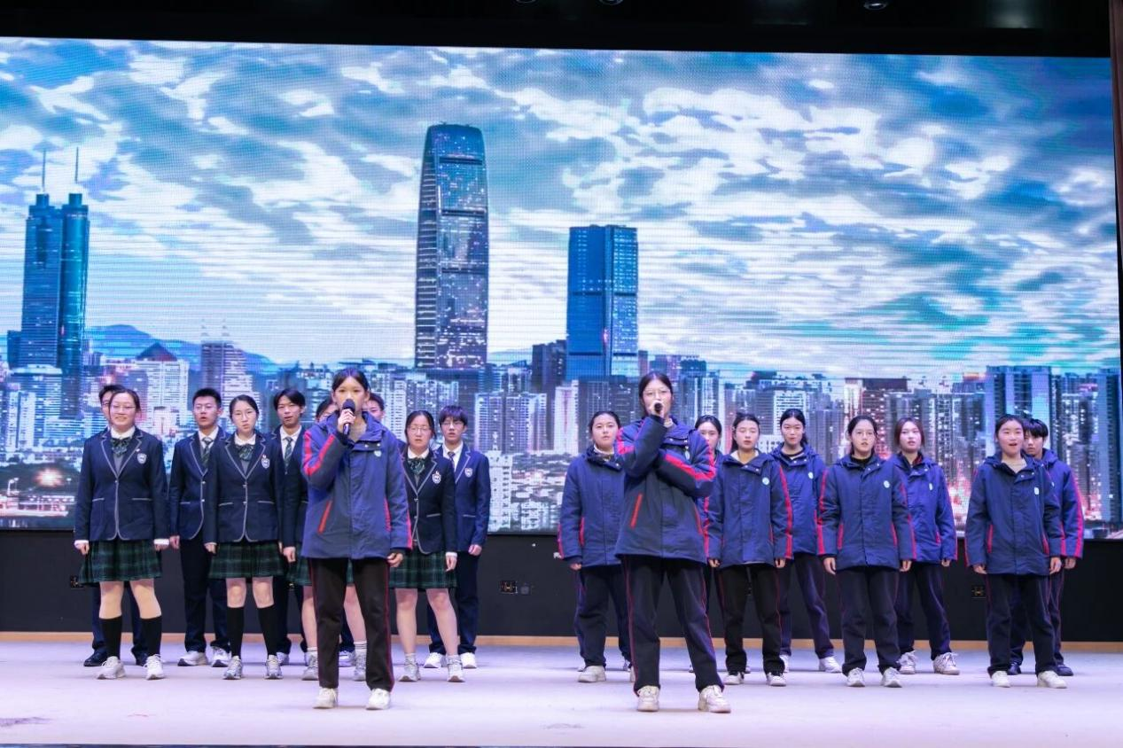 学生代表集体朗诵《青春》,激昂的声音展现了金山青年的昂扬斗志。全场齐声合唱《我和我的祖国》,深情而嘹亮的歌声将仪式氛围推向高潮。