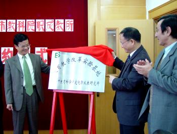 11月15日上午,我校与上海市职成教所签署为期三年的合作实施学校发展规划项目协议,并举行了该所将我校作为其《教育教学改革实验基地》的揭牌典礼。    过维义校长与马树超所长分别代表校所两方在协议上签字,并为基地揭牌。    发展规划协议包括多元化办学、建立质量监控体系、专业建设、课程改革及教材建设、师资培训等内容。    职成教所雷正光研究员以及学校全体中层干部参加了签约仪式,并听取了马所长的精彩报告。过维义校长要求全校教职员工认真学习党的16大会议精神,以此为契机,加大教育教学创新与改革的力度,与时俱进,开拓创新,逐步与国际职业教育与培训接轨。