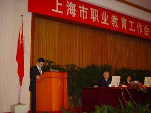 由上海市教育委员会、上海市劳动和社会保障局及上海市经济委员会共同召开的“上海市职业教育工作会议”今天在上海展览中心友谊会堂举行。上海市委副书记殷一璀,上海市副市长周慕尧,上海市委副秘书长、教育党委书记王荣华等领导出席会议并发表重要讲话。市教委主任张伟江、市经委副主任凌宝亨、市劳动和社会保障局副局长石觉敏等在主席台上就座并讲话。 会上,过维义校长作为先进代表之一作了题为《外联企业 内练硬功》的交流发言。大会还表彰了一批全国职业教育先进单位及个人、上海市职业教育先进单位及个人。我校荣获“全国职业教育先进单位”称号,过维义校长荣获“上海市职业教育先进个人”荣誉称号。 | |