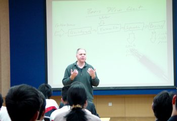 4月14日下午,德国拜耳公司常驻我校的职教专家舒特先生在校多功能厅给全校教师上了一堂别开生面的《Chemical Industry》教学公开课。    舒特先生以其独特的教学方法,向学生介绍了化工生产需要的物料、标准、符号、图例等一系列专业知识,并通过生活中常见的咖啡豆制作为例,生动地进行化学工艺流程的讲解,从而引导学生思考讨论、讲解、辩析等。充分体现师生互动、生生互动的教学理念,以提高学生的积极性与参与性。舒特先生寓教寓导,不仅注重传授专业知识,还注意培养了学生的团队精神与创新精神。整堂课得到了教师们的一致好评。