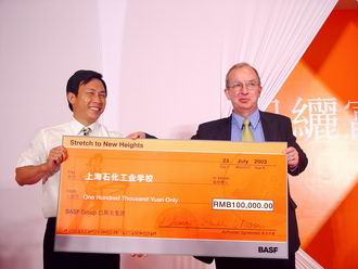 7月23日全球500强企业――化工巨头德国BASF公司在上海化学工业区举行了世界最大的聚四氢呋喃一体化项目奠基仪式,并举办推出该产品中文品牌“保�富”名为“弹动活力、再攀高峰”的活动。应BASF公司邀请,受过维义校长委托,学校副校长李平清、教研室主任王尔菲参加了奠基仪式与相关活动。 应BASF公司邀请,学校500名学生参加了奠基仪式中的3000米慈善义跑活动。BASF公司将22.5万元人民币作为慈善捐款,向上海宋庆龄慈善基金会捐赠12.5万元,向我校捐赠10万元。 我校500名学生在义跑活动中充分展示了我校学生的青春活力;展示了不畏野外40℃的高温酷暑,高度的组织性和纪律性;展示了奋力拼搏,争夺第一的精神。参加奠基仪式的BASF公司高层官员与贵宾高度评价了我校学生的精神面貌与拼搏精神。BASF公司官员还对义跑前三名学生颁发了奖杯和奖品。 | |