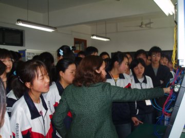 个班级的同学分别到德国拜耳实训基地、德固赛实训基地、机电数控实训基地、电工电子实训基地和物流实训基地进行参观。在参观活动中,各实训基地的老师为同学们作了详细的专业介绍,并亲自演示了设备的操作过程。让即将选择专业的同学对各科、各专业有了一个感性的认识。很多同学就自己感兴趣的专业进行了详细的询问和了解。