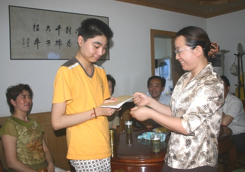 2006年6月14日中午,带着031计算机班和学校的一片款款心意,冒着沥沥细雨,在党委书记姚松芳老师的带领下探望因病休学在家的我校学生孙某。并将慰问金送达学生家长的手中。工会主席张伟老师、学生处主任唐连喜老师以及班主任老师一并前往。