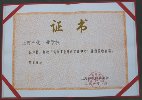 在11月3日举行的首批上海市职业教育开放实训中心落成典礼暨工作推进会上,我校我校承建的上海市职业教育化学工艺开放实训中心首批获得由上海市教委颁发的建设合格证书。