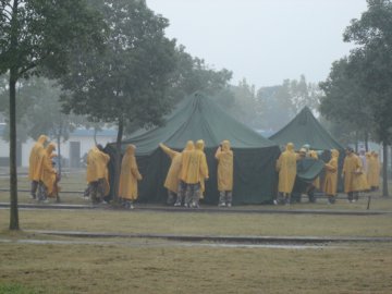 三天的活动在20日上午隆重的入营式中正式拉开帷幕。训练项目包括国防国家安全教育,射击,战场救护,单兵战术,火炮,军事定向,战地扎营等等。同学们经过这些学习训练真正的体会了一回当军人的感觉,刚毅、坚强,还有心中的一份自豪。晚上活动安排的是观看战争影片和学生自演的文艺晚会。所有的活动都丰富多彩又深具教育意义,同学们学得很认真,知道了什么是“军令如山”、“令行禁止”。虽然这三天一直是阴雨绵绵,手脚也是酸疼无比,但是谁也不愿意掉队,谁也不愿意错过任何训练的项目。在训练结束以后,我们的学生似乎真的懂事了些,长大了些。