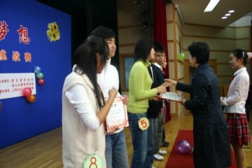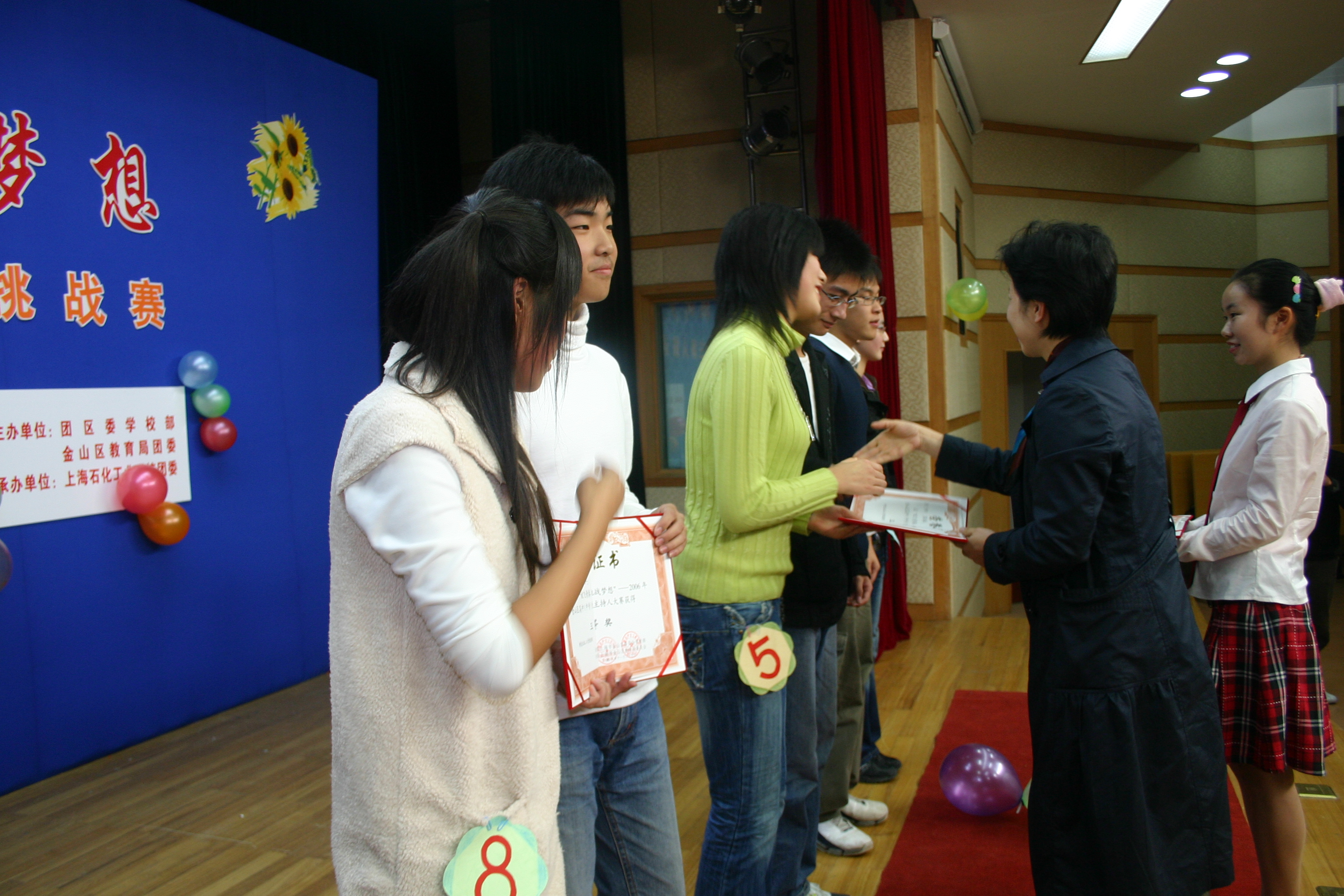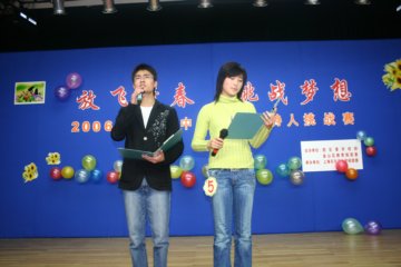 年11月26日“放飞青春,挑战梦想”――2006金山区高中(中专)生主持人挑战赛是由金山团区委学校部、金山区教育局团委主办,上海石化工业学校团委承办的一次全区性的大型活动。全区共有10所高中、中专派代表参加了本次比赛。本次活动旨在为当今的中学生提供一个展现自我风采的舞台,锻炼学生的胆量、机智,为中学生成才打下坚实基础。比赛共分四个环节,第一环节:自我展示,在这个环节里,选手们可谓“各显神通”,吉他,小品,舞蹈,童话剧,各式各样,形式新颖,充分展现了学生的创新精神;第二环节:朗诵,旨在考核选手的语音水平和表达能力;第三环节:机智表演,这也是比赛的中心环节,拓展型的题目可以让选手们自由发挥,也考验了选手的临场发挥能力;第四环节:回眸,选手最后上场作总结。四个环节,环环相扣,比赛相当精彩。