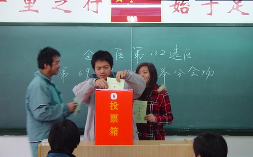 由于我校的特殊情况,除在本校区内设立了7个投票箱外,为了使综合高中和下厂实习的四年级学生享有同等的选举权利,我校选举工作人员积极创造条件,在朱泾和学生实习厂区另设立了2个流动票箱,确保了选举工作的顺利进行。