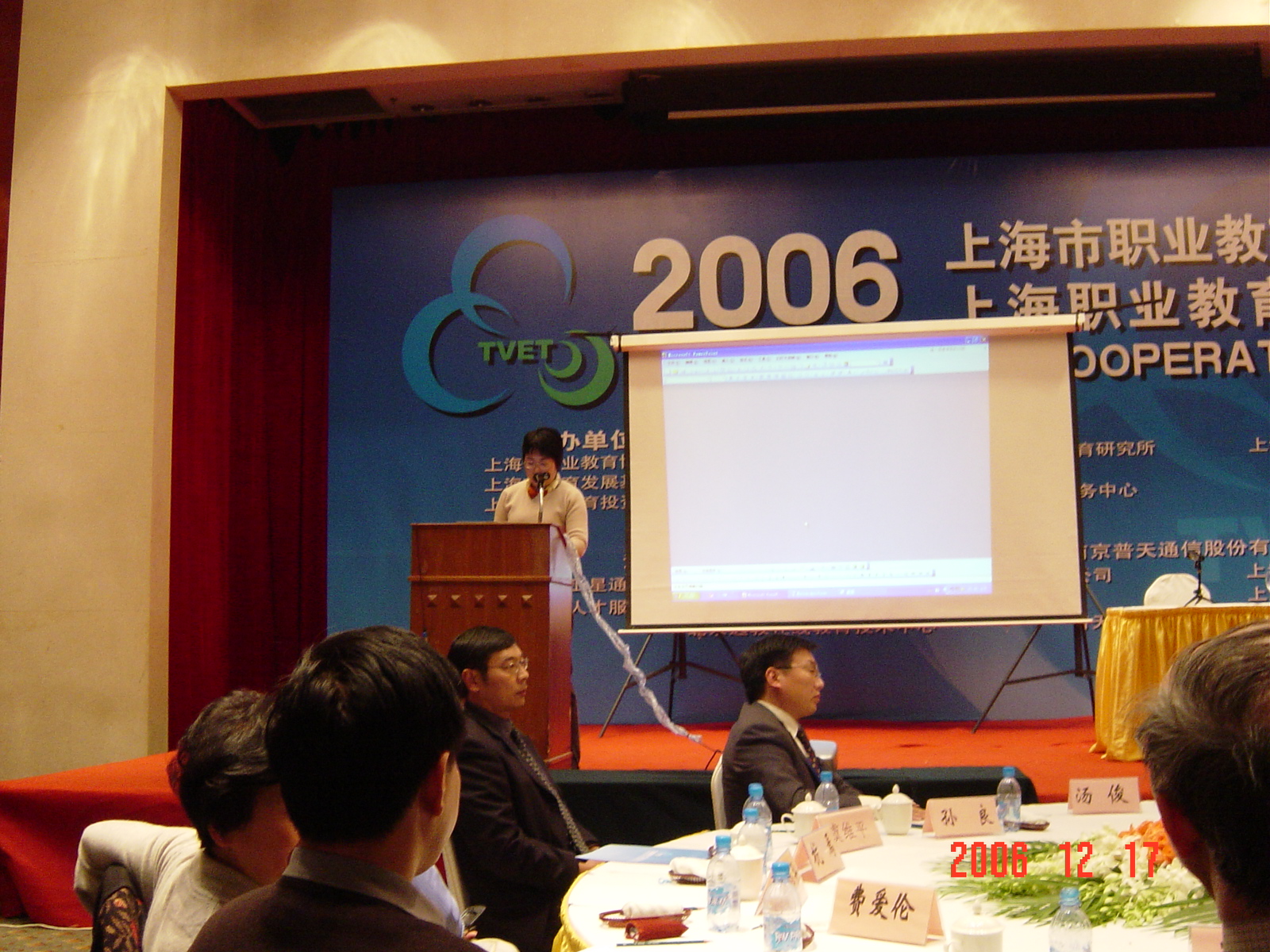 2006上海市职业教育协会年会暨上海职业教育合作论坛于12月16日 在上海光大会展中心召开。会议由职业教育协会会长薛善民主持,谢丽娟、瞿钧、王明达、杨金士等领导出席了会议,冯波校长代表我校出席了论坛。