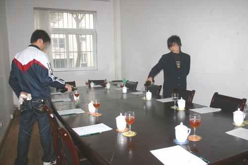 多名学生报名参加“会展”项目的初赛,我们将根据学生初赛的会议铺台操作、