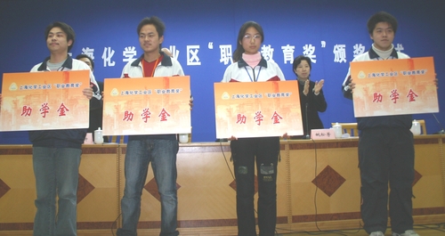 此次颁奖对在学校的教育教学及教科研等方面做出创新贡献的优秀教师和品学兼优的学生进行奖励,同时为品学兼优的贫困学生提供助学金,共颁发2006年学校上海化学工业区职业教育创新奖共8个集体、15个个人奖项,以及300个各类奖学金和49个帮困助学金。