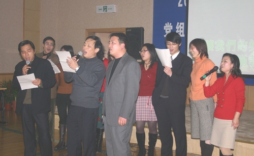 一月十八日下午五点,在新春佳节即将来临之际,教学分工会在B区多功能厅举办了教学分工会迎新联欢会。李平清副校长、熊海滨副校长、张伟主席、林国新副校长、王平主任参加了此次联欢活动。