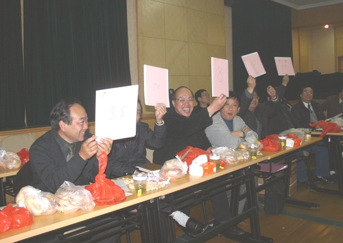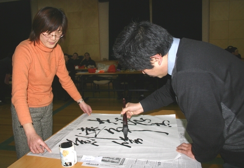 在“让世界充满爱”的歌声中拉开了联欢晚会的序幕。此次活动丰富多彩、富有新意,其中“绝代双骄”PK大赛逐渐把晚会带入高潮,在赶“金猪”游戏中,校领导参赛队你追我赶,引起了满堂欢笑声,由栾承伟、张丽英、姜方芳、余海燕、孙峰、迮育彪六位主任朗诵的《感谢您!上海石化工业学校》,激情高亢,表达了对石化工业学校的无限热爱。娄劲夫老师飘逸的书法表演获得了阵阵掌声,书写的“志在高远、争创第一”表达了教学分工会全体教职工的心声,也表达了学校争创“全国一流学校”的决心,娄劲夫老师代表教学分工会把自己的书法作品当堂赠送给了学校。