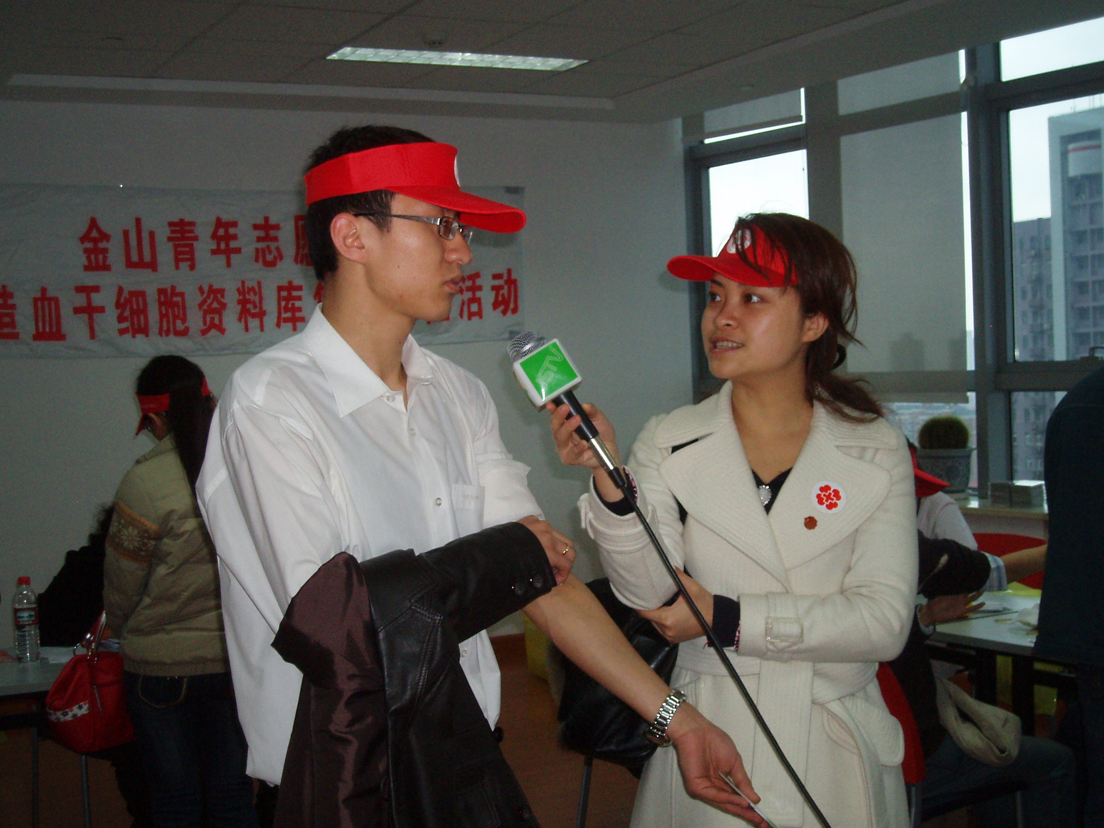 为了更多的白血病患者能够得到生存下去的权利,陈文博、喻丹老师在接受电视台采访时也呼吁更多的青年能参加到造血干细胞捐献的行列中来,给社会更多的关爱。几乎所有捐献者都是站在了那些患者的角度去考虑问题,才会义不容辞地卷起衣袖。志愿者的热情和真诚让他们胸前的团徽更加耀眼。