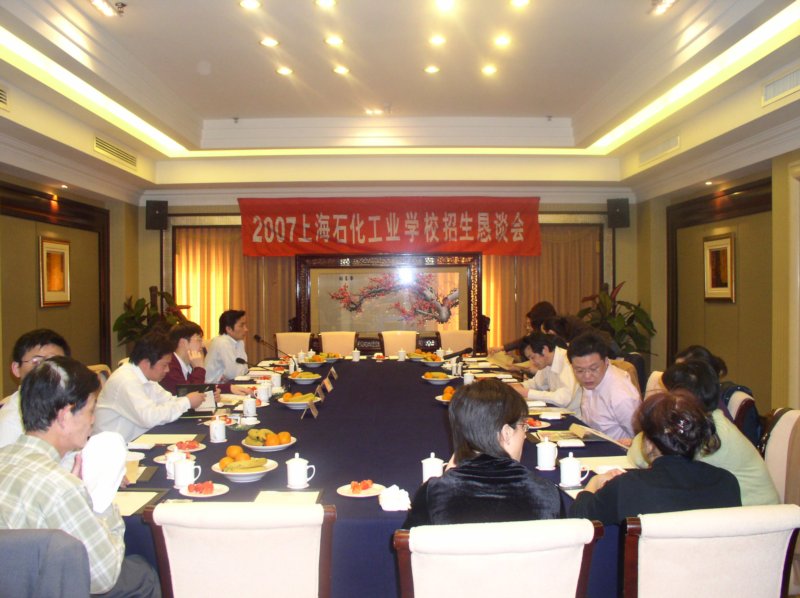 2007年3月28日 下午,我校在张家港华方金陵大酒店召开“2007上海石化工业学校招生恳谈会”。出席会议的有上海市教委规划处张福顺,上海市教育考试院中招办顾宝君,各区县招办主任等领导。