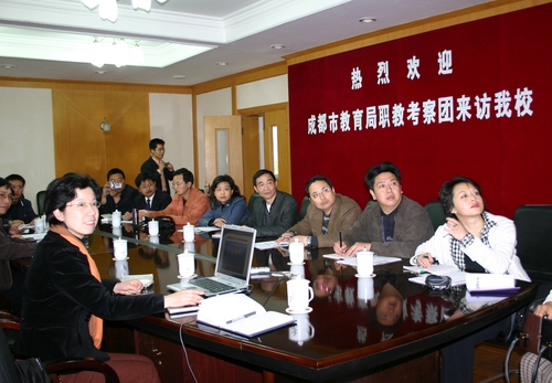 月5日下午,成都市教育局职教系统的校长对我校进行实地考察。我校党委书记姚松芳带领校长们参观校园和实训中心,校长们一边听着姚书记的详细介绍,一边感叹道:“学校能用这么大的精力、财力、人力创造出全国一流的教学环境,真是不容易,不愧为国家级重点中等职业学校。最后,校长们还饶有兴趣地听取了姚书记对我校办学特色的介绍。