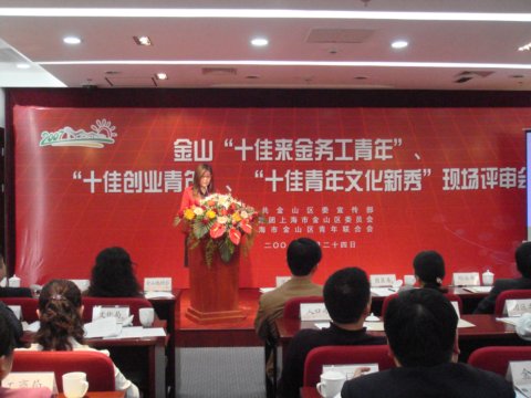 2007年4月24日下午,由区委宣传部、金山团区委、青年联合会主办的金山区“十佳青年文化新秀”现场评审会在区会议中心5104室隆重举行,来自全区各行各业的15名候选人参加现场评审,最终选出10人评为金山区“十佳青年文化新秀”。我校薛舒老师作为候选人之一参加了评选活动。薛舒老师不仅才艺出众,在写作方面的成就更是令人瞩目,现已发表小说、散文等文学作品八十余万字。