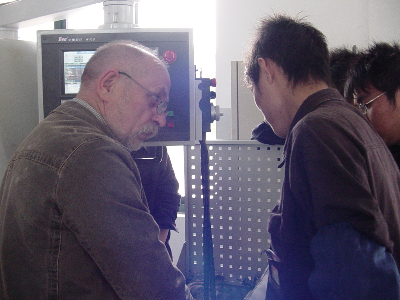 EBG与我校合作开办的数控短训班已正式开班。此前,德国数控专家已到达我校为我校的数控短训班进行指导。本周我校迎来另一位德国数控专家克劳斯・施林(Klaus Schilling),他将我校数控中心为学生进行为期2个月的指导,图为施林先生与我校EBG数控班学生进行亲切交谈。